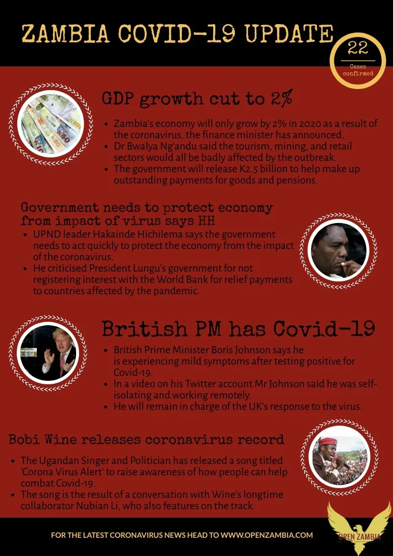 Coronavirus Update: 22 Cases Confirmed Open ZambiaMarch 27, 2020Comment Facebook0 Twitter Pinterest0 0 Likes