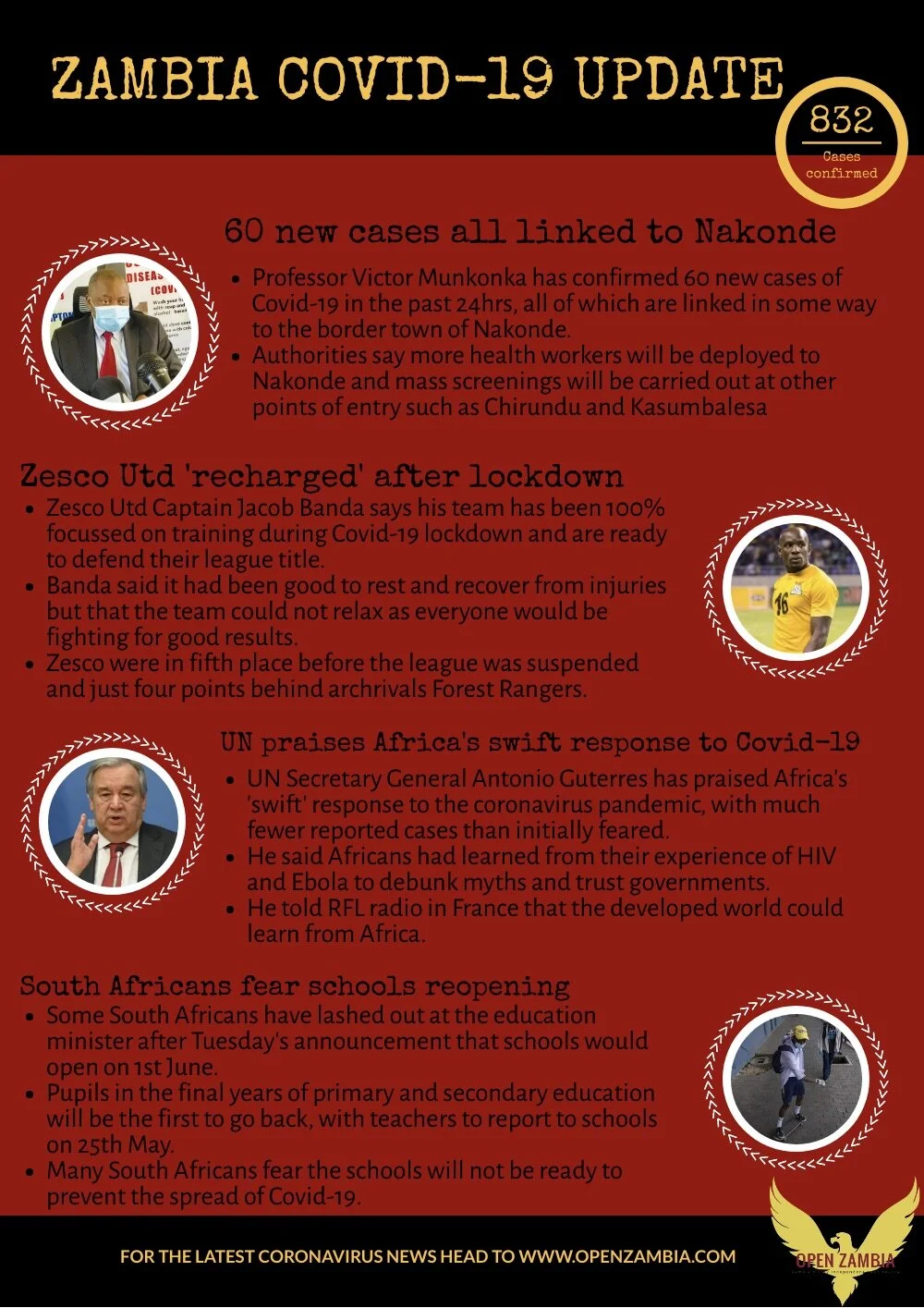 Covid-19 Update: 832 Cases Confirmed Open ZambiaMay 20, 2020Comment Facebook0 Twitter Pinterest0 0 Likes