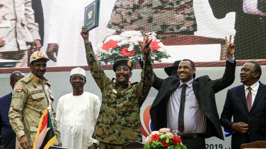 Sudan has seen pro-democracy protests and repression since long-time ruler Omar al-Bashir was ousted in April. The deal was signed by Hemeti and Lt-Gen Abdel Fattah Abdelrahman Burhan for the military council, and Ahmed al-Rabie for the Alliance for Freedom and Change umbrella group of pro-democracy protesters. The prime ministers of Ethiopia and Egypt and the South Sudanese president were among regional leaders that attended the ceremony.