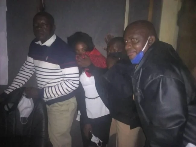 Staff at Isoka FM hiding from PF attackers in May 2020.